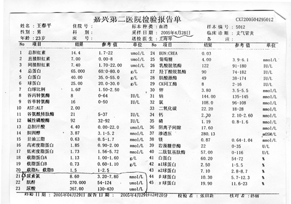 王春平治疗前肾功能化验单 |